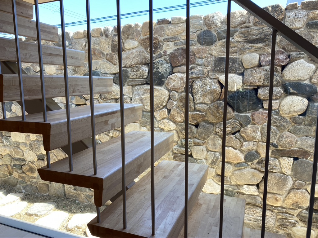 This expansive stone wall demonstrates the art and precision of traditional stone masonry on a grand scale. Local stone from Litchfield County shipped to Japan. Carefully chosen river stones of varied size, shape, and color are meticulously fitted together. The gentle inward curve of the wall adds both strength and a sense of beauty.